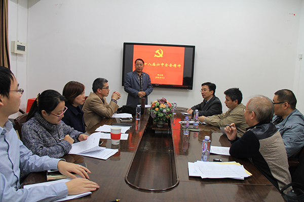 12月2日下午,外国语公司党委在外语楼306会议室召开中心组学习会,深入学习贯彻党的十八届六中全会精神。外国语公司党委书记谢友福同志做专题报告。