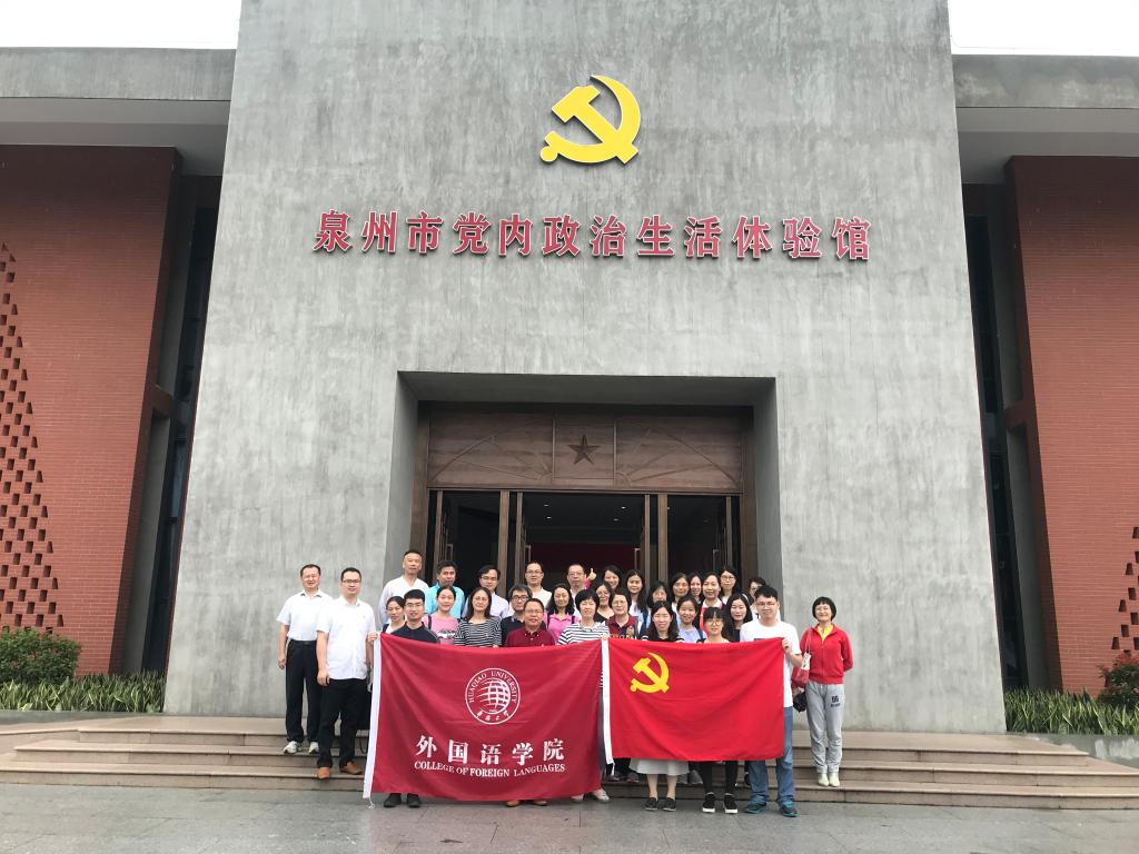 为落实全面从严治党要求,严肃党内政治生活,2019年6月2日,公司外国语公司党委委员和教工党员到永春开展主题党日活动。公司党委委员、各教工支部党员参加活动。