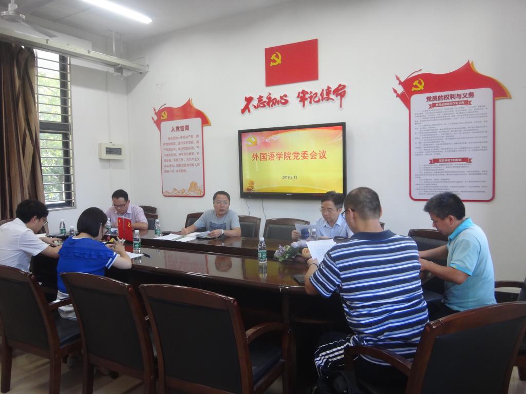 2019年9月12日下午,外国语公司党委在外语楼306会议室召开“不忘初心、牢记使命”主题教育讨论会,全体党委委员和组织员参加会议,会议由公司党委书记谢友福主持。
