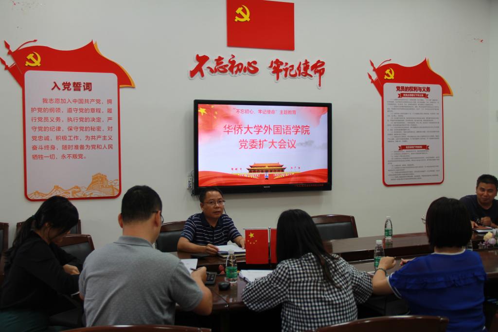 2019年9月26日,球王会在306党建会议室召开党委扩大会议部署“不忘初心、牢记使命”主题教育相关工作,全体党委委员和党支部书记参加会议。外国语公司党委副书记郑志民主持会议。