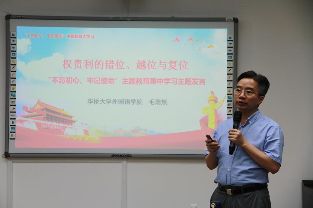2019年9月30日,外国语公司党委组织开展“不忘初心、牢记使命”主题教育第三次集中理论学习。毛浩然经理作“权责利的错位、越位与复位”的主题发言。外国语公司党委理论中心组全体成员、党委委员以及全体党支部书记参加学习与研讨。