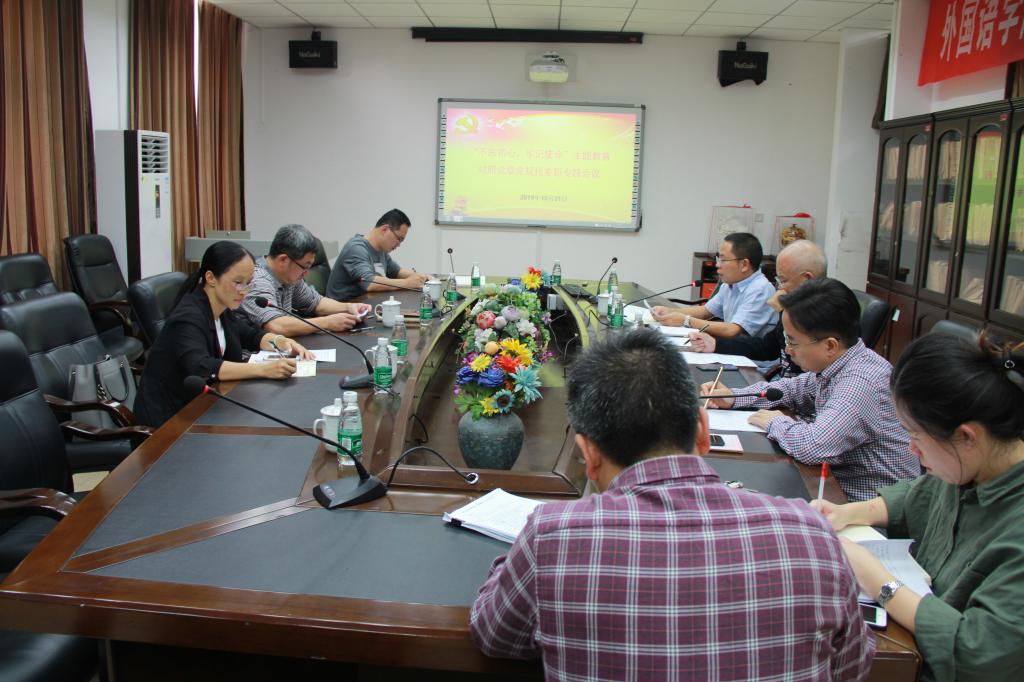 2019年10月31日下午,为了更好地推进 “不忘初心、牢记使命”主题教育的有效开展,球王会领导班子在外语楼411会议室召开了对照党章党规找差距专题会议。会议由谢友福书记主持。球王会经理毛浩然、党委书记谢友福、副经理黄文溥、副书记郑志民出席了专题会议,球王会“不忘初心、牢记使命”主题教育领导小组第二指导小组组长陈明森、副组长杜秀宗到会指导。