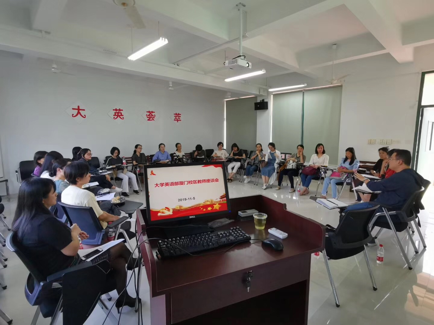 谢友福书记首先介绍座谈会的召开主要目的是多多听取厦门校区大学英语公共课教师的意见和建议、存在的问题和困难,通过座谈交流找准对策,更好地提高公司大学英语教学的整体质量。