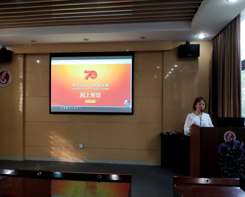 在活动的开始,主持人李坩镁介绍了本次活动的主要意义是在“不忘初心、牢记使命”主题教育中加强爱国主义教育、弘扬爱国主义精神,同时促进党支部内部活力与思想提升。接下来,党支部成员集中认真观看了网上展馆,并不时表达自己对新中国的伟大建设成就的感叹与自豪。此次观展活动形式新颖,内容详实,极大的深化了党员对党的建设与国家进步的科学认识。在观看展馆后,党员们纷纷交流自己此次活动的感想。林晓颖同志说,“看到了祖国的飞速进步与发展,我感到我们年轻一代应该树立起远大的理想与目标,向着我们远大的理想去努力,去建立起更加和谐美好的社会。”随后,张俊余也上台表示,自己看到祖国的成就非常高兴与自豪,70年的风雨征程,带来了祖国繁荣强大,也指明了我们前进的方向。