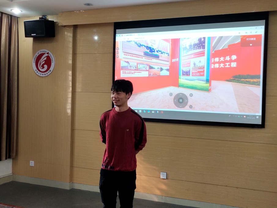 2019年11月18日下午3点,球王会本科生第一党支部成员在外语楼207教室,开展了新中国成立70周年网上展馆参观活动,同时采用多种形式深化活动内容,提升老员工党员的党性修养。
