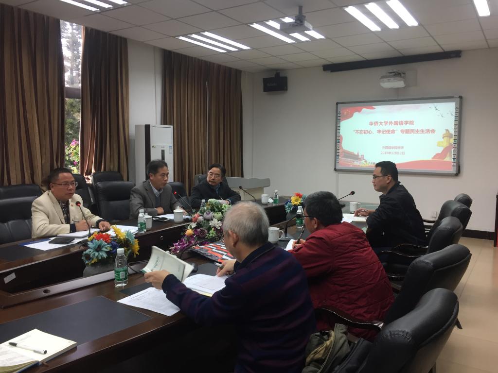 2019年12月12日下午,外国语公司党委在411会议室召开“不忘初心、牢记使命”专题民主生活会,公司党委副书记、纪委书记毕明强到会指导,公司领导班子党员干部谢友福书记、毛浩然经理和郑志民副书记参加会议,党外领导干部黄文溥副经理、杜志卿副经理列席会议,会议由公司党委书记谢友福主持。