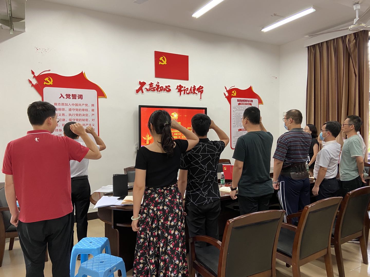 2020年7月1日下午,为庆祝中国共产党成立99周年,外国语公司党委在公司306党建室召开期末党委工作会议,举行“重温入党誓词、执守初心使命”集体宣誓仪式。公司党委委员出席会议,各支部书记列席会议,在党委书记谢友福的带领下,举行集体宣誓仪式,一同重温了入党誓词。