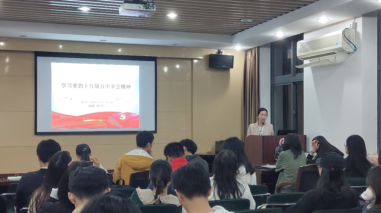 12月2日晚,球王会研究生第二党支部在外语楼207会议室召开十九届五中全会精神专题学习报告会暨2020年第四季度积极分子汇报大会。外国语公司党委组织员吴倩倩老师作题为《学习党的十九届五中全会精神》的宣讲报告,研究生第二党支部全体党员及24名入党积极分子与会,会议由研究生第二党支部支委会成员曾泽健同志主持。