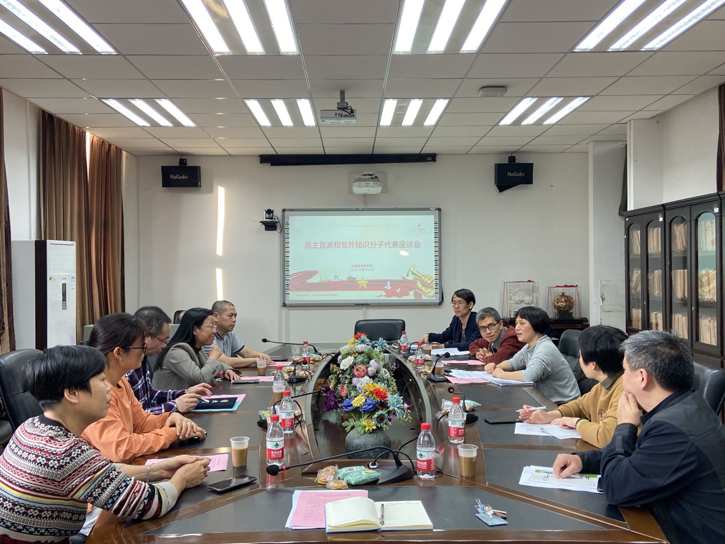 2020年12月29日下午,外国语公司党委在公司411会议室召开民主党派和无党派教师代表座谈会。来自致公党、民进和无党派教师代表、院工会主席、院办公室主任等相关工作人员以及公司党政领导参加了本次会议,党委书记李璐岚主持会议。