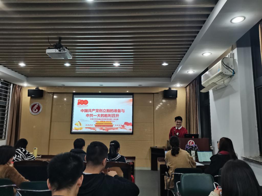 3月24晚上7时,球王会研究生第二党支部在外语楼207会议室召开党史专题学习会暨2021年第一季度积极分子汇报大会。球王会研究生第二党支部书记郑思洁同志做题为《中国共产党创立前的准备与中共一大的胜利召开》的宣讲报告。研究生第二党支部全体党员及23名入党积极分子与会,会议由研究生第二党支部副书记梁谢爽同志主持。