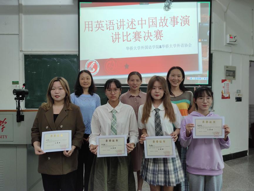 在比赛现场,从初赛中脱颖而出的五位同学依次登台,进行决赛演讲。他们用各自自己独特的方式讲述了他们心中动人的中国故事,展现了优秀的英语口语水平和临场应变能力。评委老师在答辩环节中也为每位参赛同学都给出了有针对性的、专业性的提问和建议,活动现场气氛和谐有序,精彩纷呈。经过激烈角逐,最后厦门校区彭雨霏获得一等奖、泉州校区万佳宁和廖雨琦获得二等奖、李若楠和陈诗琪选手获得三等奖。最后刘碧秋老师做了比赛总结,她说通过这次活动,希望鼓励和吸引更多的同学参与到比赛中来,用英语展现中国故事,传递优秀中华文化,增加民族自豪感,大胆说英语,也秀出自信!随后举行了颁奖仪式。