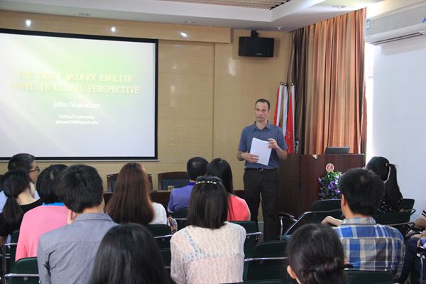 2014年6月27日,美国德保罗大学英语系John Shanahan博士来专程公司讲学。当天上午,John Shanahan博士与公司领导和部分师生座谈,座谈的氛围热烈,内容涉及英美文学研究、学术交流与合作等方面。下午,John Shanahan博士在外语公司大会议室为公司师生做了两场内容丰富的学术报告:1)全球化视野下的早期现代英语小说(The Early English Novel in Global Perspective);2) 文学与批评中新媒体技术的功用(New-Media Tools in Literature and Criticism)。John Shanahan博士收集的文献资料翔实,学术观点新颖独到,对公司师生如何做文学批评有很好的启迪作用。