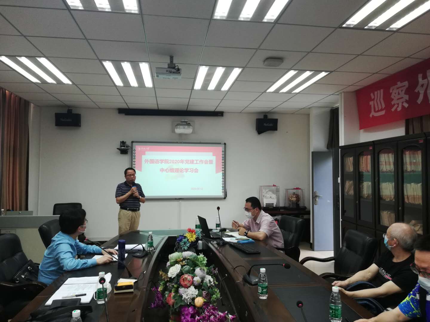 2020年5月12日下午,外国语公司党委理论学习中心组(扩大)在外语楼411会议室开展题为全面从严治党专题学习讨论会——政治建设:党的根本性建设的理论中心组(扩大)暨2020年党建工作会。经理毛浩然,副经理黄文溥,副经理杜志卿,党委副书记郑志民,党委委员及支部书记参加学习,公司党委书记谢友福主持集体学习。