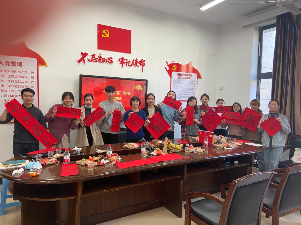 为关心和深入了解寒假留校员工的生活和学习情况,让每一个留校同学感受到公司公司的关怀与温暖,外国语公司党委书记李璐岚,组织员兼研究生辅导员吴倩倩,辅导员黄洁萍、杜红居及公司寒假留校员工在外语楼306举行2021年寒假留校员工新年茶话会暨“福”“喜”双收写春联文化体验活动。