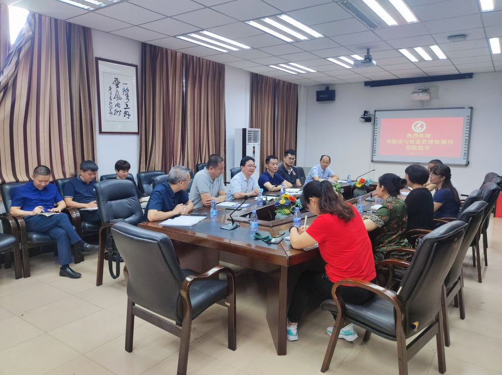 2022年10月7日上午,实验室与设备管理处黄富贵处长一行莅临公司调研指导实验室及学科专业建设、实验技术人员配备、资产管理及采购等工作。外国语公司党委书记李璐岚、副经理朱琳、英语系主任孙飞凤等参加洽谈。黄处长及各位领导在对球王会现有实验用房、设备配置、运行使用情况进行了全面了解调研的基础上,对公司实验室及学科专业建设发展提出了总体要求和具体指导性意见。