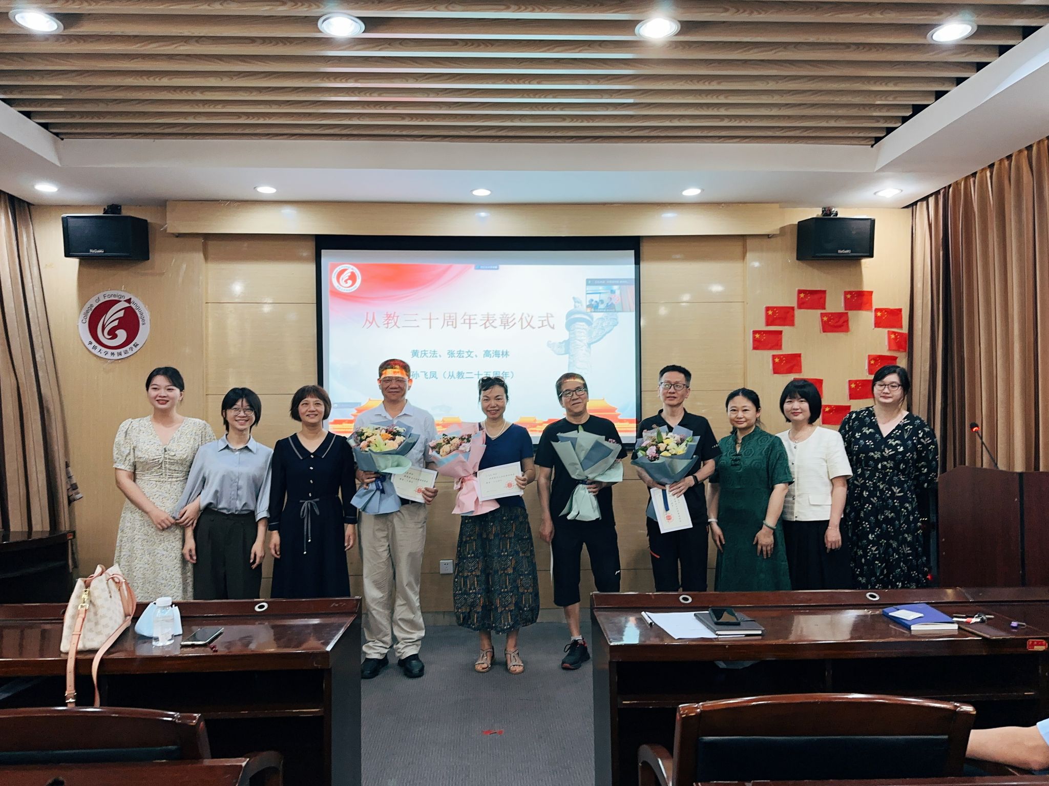 首先,举行表彰仪式,李璐岚书记宣读表彰从教三十周年教师名单,与朱琳副经理分别为黄庆法、孙飞凤、张宏文和高海林4位老师颁发荣誉证书,由公司新进青年教师为他们献上鲜花,表达敬意和传承,并合影留念。“从教30年”是教师生涯中一个光荣的里程碑,李璐岚代表公司向受表彰教师表达敬意,教育事业崇高而伟大,教师职业光荣而神圣,恰逢新时代、新思想、新机遇、新征程,希望大家在从教三十年的新起点和新征途上,一如既往的厚植爱国情怀、涵养高尚师德,也勉励广大青年教师要做心怀“国之大者”的大先生,志存高远、敬业奉献,并将这种精神传承下去,在年轻教师身上发扬光大。接着受表彰的教师逐一讲话,回顾过往,他们结合自己的教育生涯回顾了来校工作以来发生的变化和自己成长的足迹,表达了对公司培养的感激之情和对公司未来发展的期望,也勉励青年教师加强学习、提升个人修为和科研能力,为公司发展和实现个人价值而奋斗。