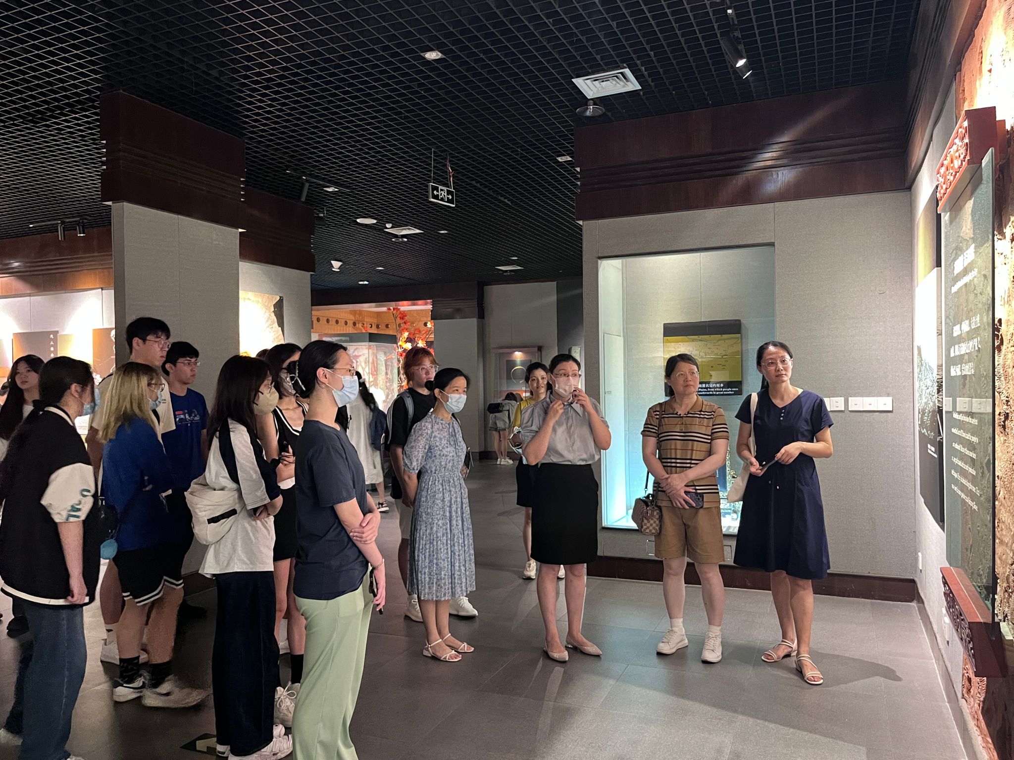 泉州博物馆作为展现泉州多元文化宝库的一扇窗口,在学术研究、文化交流方面起到了关键性作用。在馆内专业讲解员的引导下,师生们首先来到二楼展厅,沿着历史发展的轨迹,从 “早期开发”到“刺桐崛起”、“东方第一大港”、“泉南雄风”这四大重要阶段见证泉州城的兴起。同学们通过欣赏馆内展出的瓷器、纺织品、窑炉、石碑等文物,切身地感受到古早泉州人民的勤劳与智慧,也感受到早期闽南人民积极改善生活的热情。同时馆内也列举了古代泉州地区的教育、宗教、方言等非物质文化,以及近代军民抗倭事迹,同学们纷纷表示通过亲身经历更能感受到这座城市的包容开放,也加深了对“爱拼才会赢”闽南精神的理解。