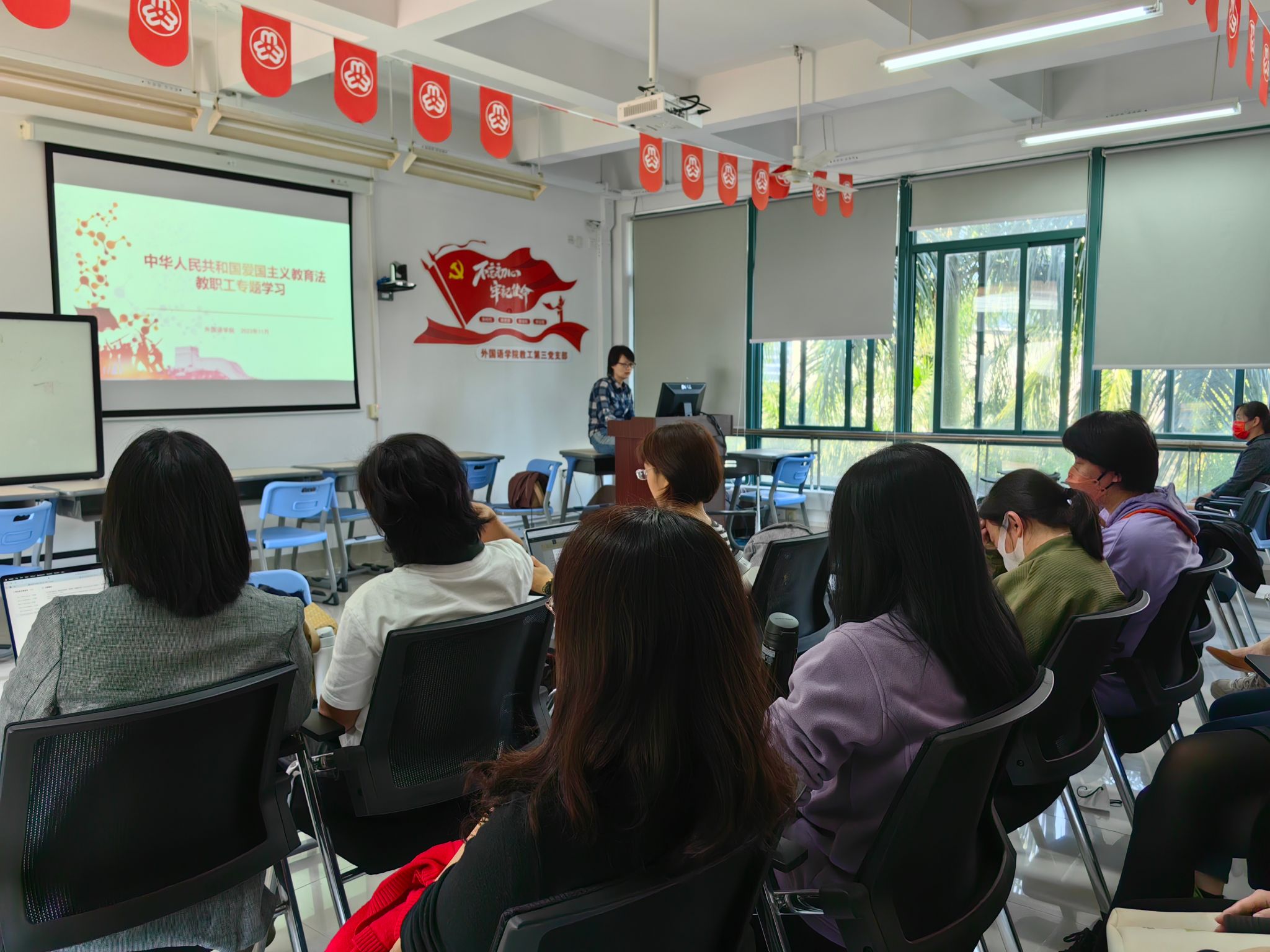为加强新时代爱国主义教育,传承和弘扬爱国主义精神,更好地将爱国主义教育全面融入外语课程思政教学,培养青年老员工爱国主义思想。11月28日球王会大学英语部组织开展《中华人民共和国爱国主义教育法爱国主义教育法》教职工专题学习,大英部全体教职工分别在厦门校区和泉州校区视频会议形式共同参加学习并组织研讨。